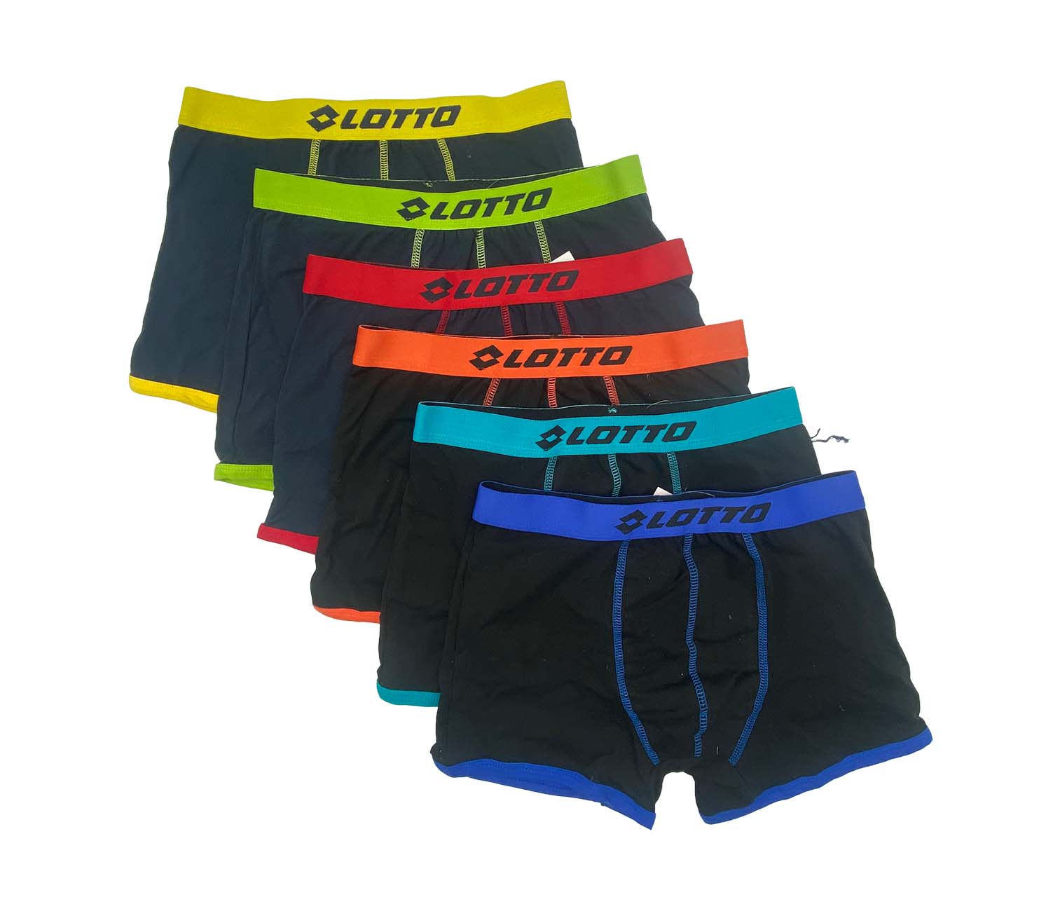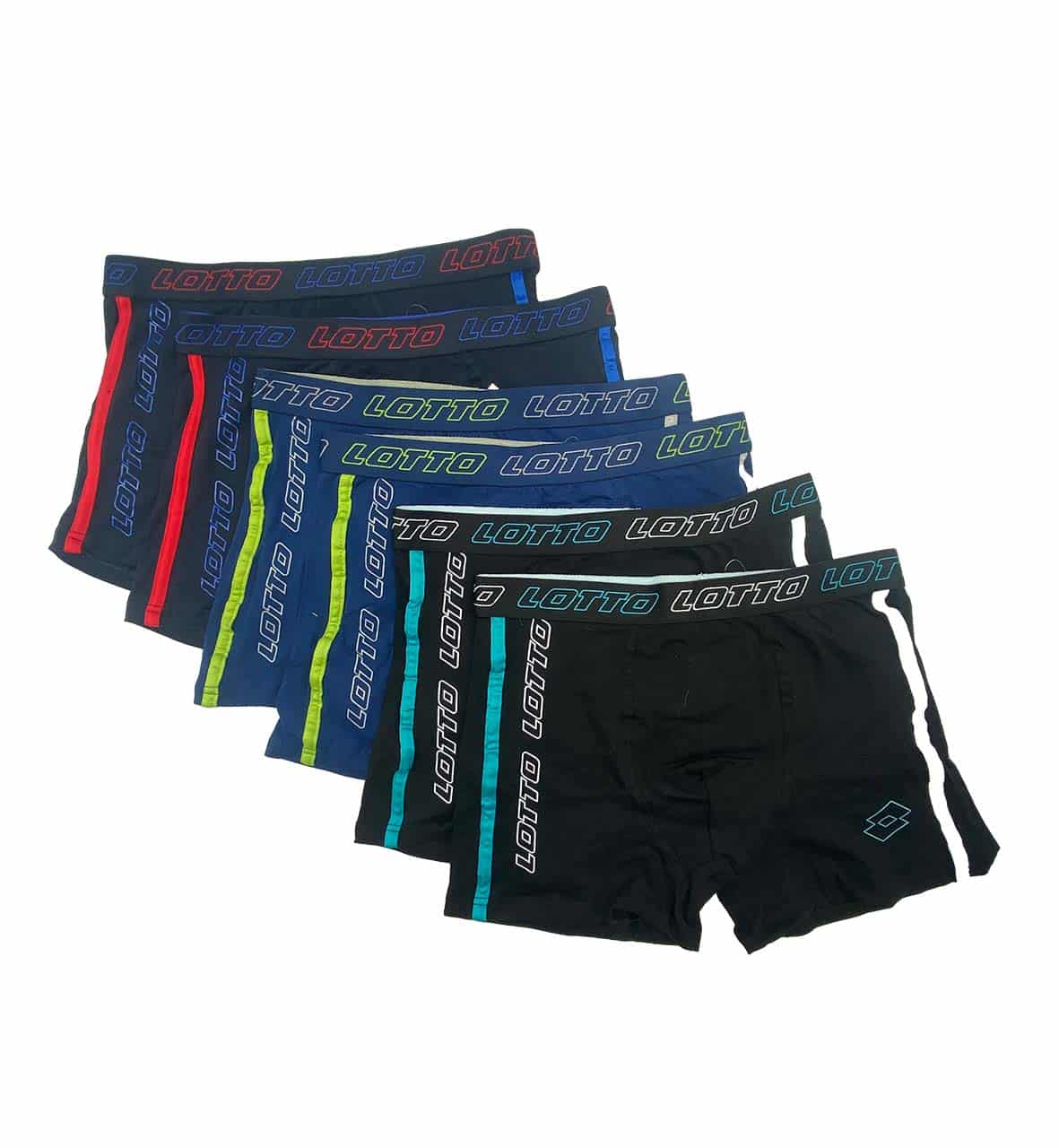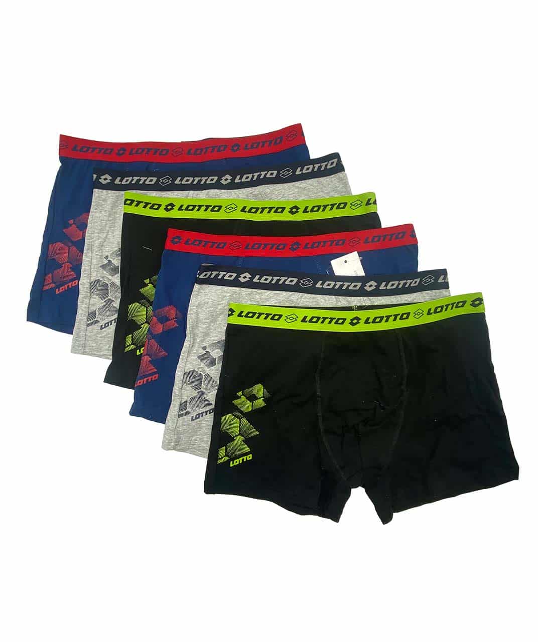 Boxer uomo Lotto in cotone elasticizzato, confezione da 6 pezzi assortiti. Comfort, praticità e convenienza per l’uso quotidiano.