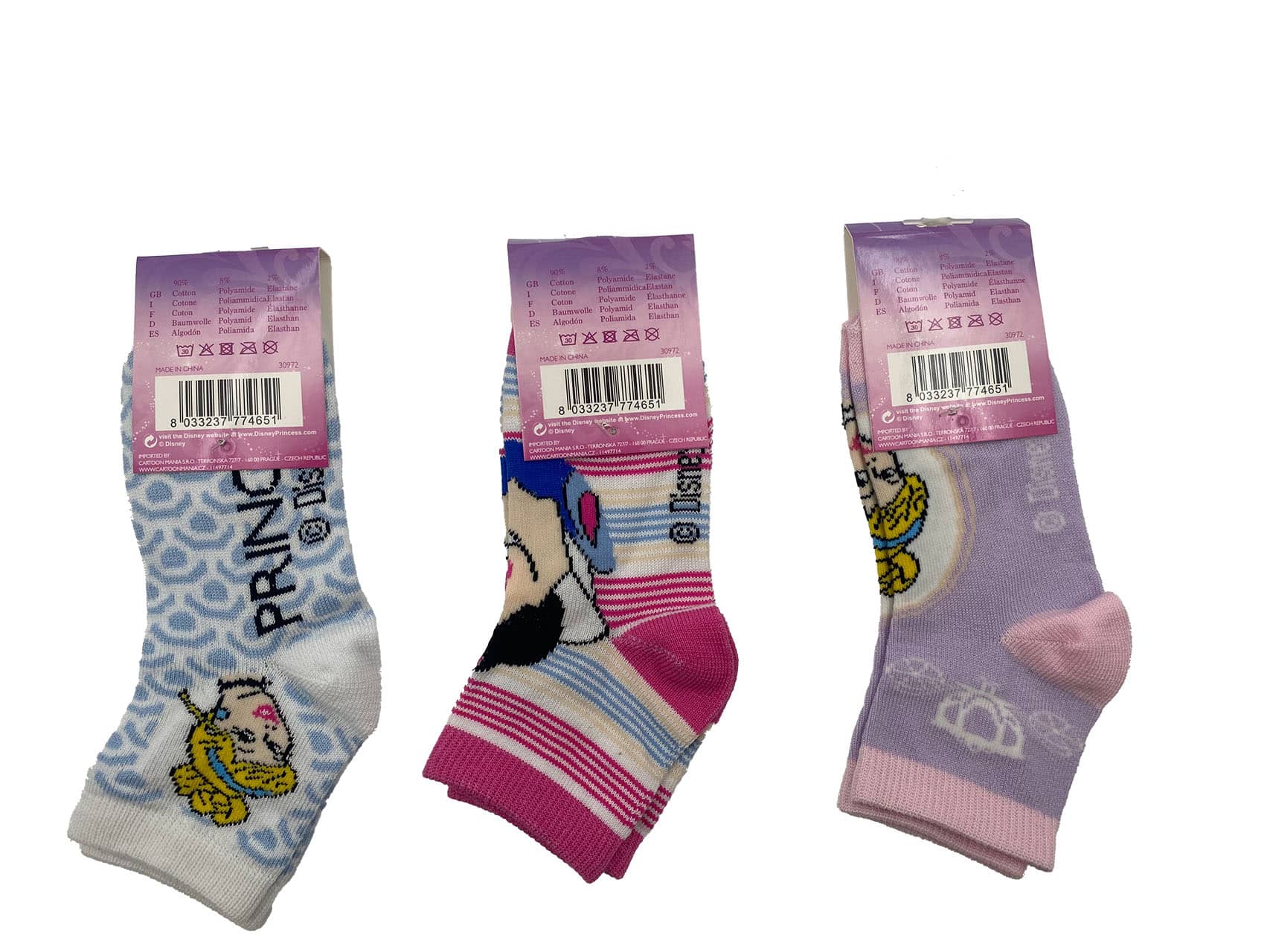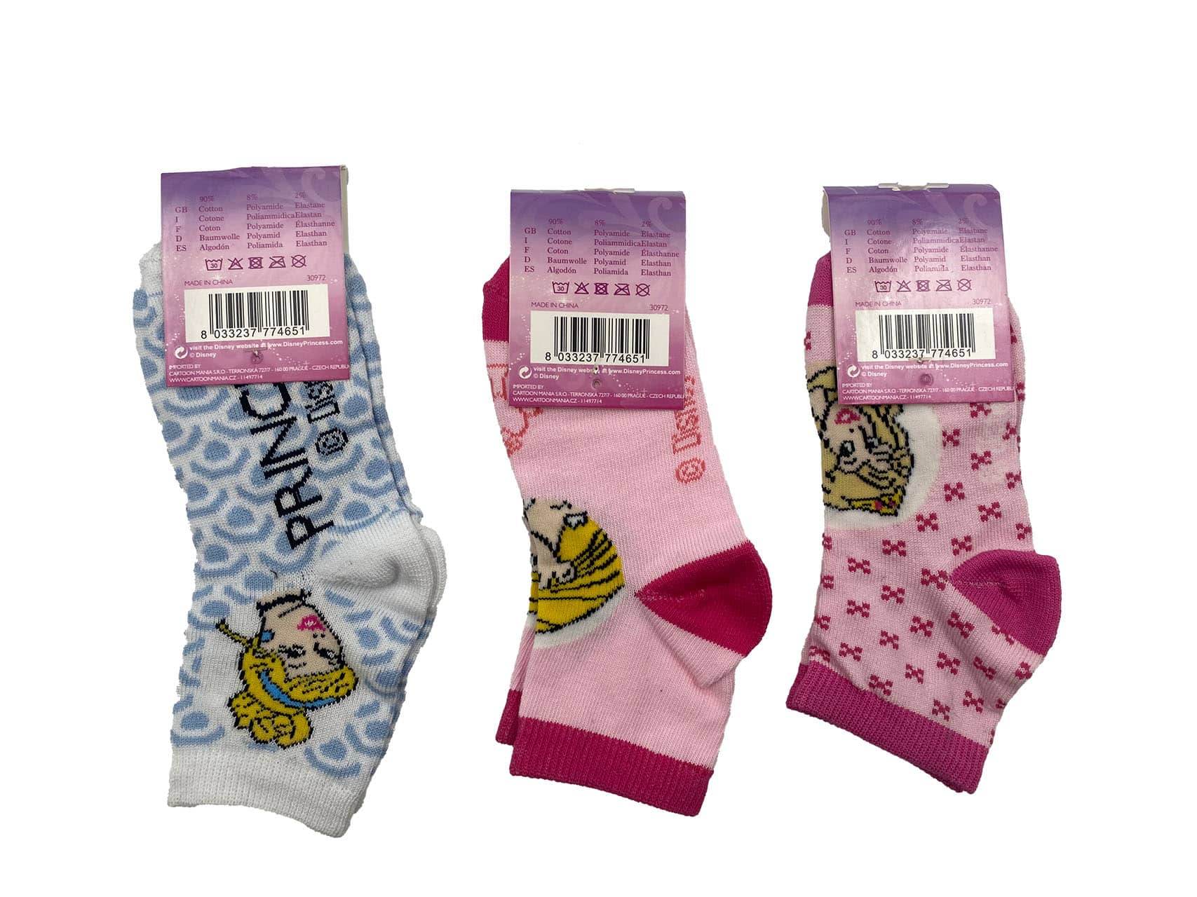 Calzini corti bambina Principesse cotone estivo 30972 3PZ sono l’accessorio perfetto per unire comodità, freschezza e allegria durante le giornate estive della tua piccola.