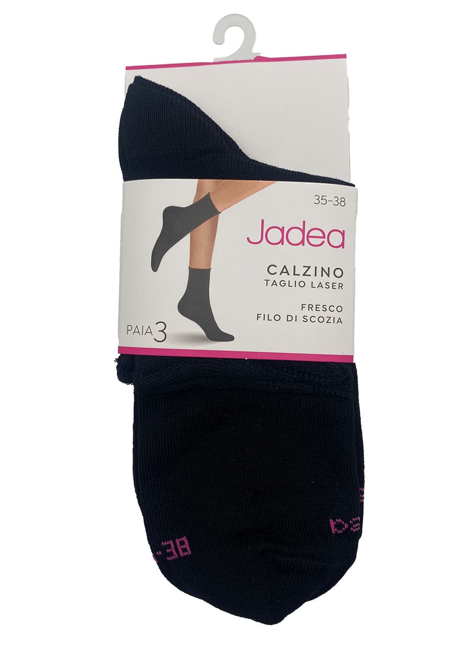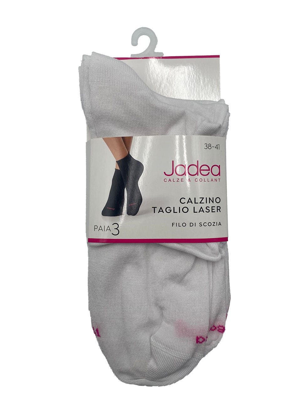 Calzini corti donna Jadea JB8000 in filo di Scozia senza elastico 3pz. Mini calza morbida in cotone, ideale per comfort quotidiano. Disponibile in bianco e nero.