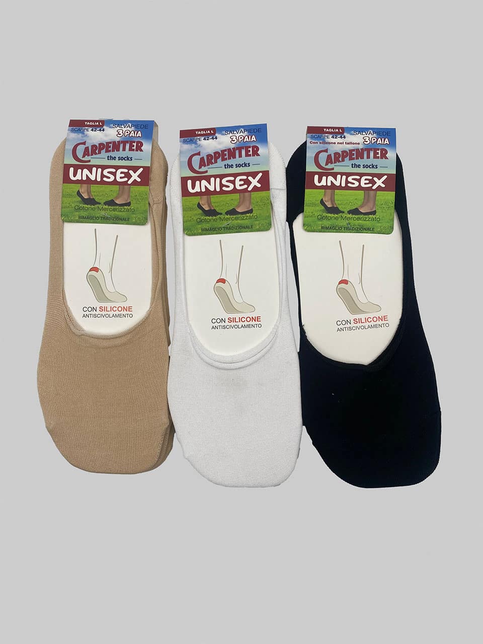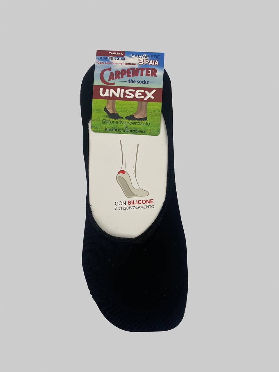 Calzini fantasmini in cotone unisex Carpenter G020 3pz da uomo e donna, morbidi e resistenti con silicone antiscivolo. Perfetti come calze fantasmino comode e invisibili per ogni occasione.