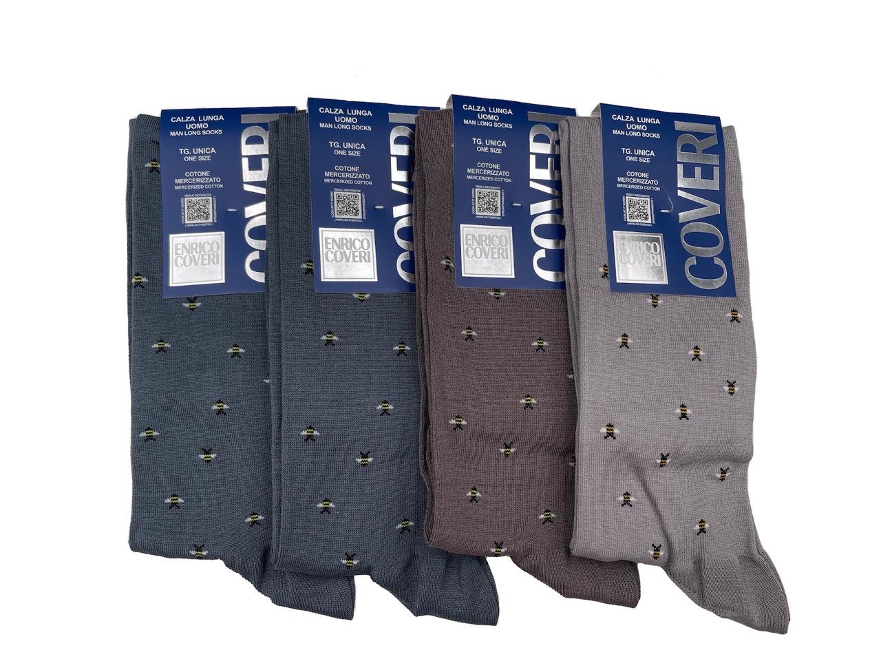 Calzini lunghi uomo cotone Enrico Coveri SUMMERLINE 252 4PZ: questi calzini sono la soluzione ideale per aggiungere comfort e stile al tuo look estivo. Realizzati in cotone di alta qualità, sono perfetti per mantenere i piedi freschi e asciutti nelle giornate calde. La fantasia con piccole api aggiunge un tocco di originalità, rendendoli ideali sia per un abbigliamento casual che elegante.