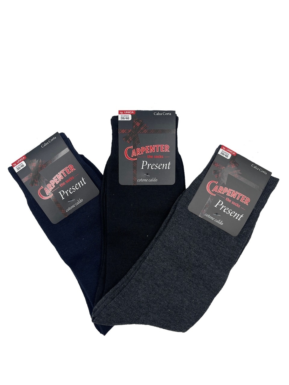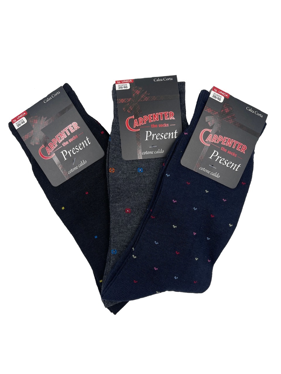 Calze invernali uomo fantasia Carpenter PRESENT 3PZ: cerchi dei calzini invernali uomo che combinino comfort, stile e praticità? Le calze Carpenter sono la scelta ideale per mantenere i piedi caldi e alla moda durante l’inverno. Realizzati in caldo cotone, offrono una sensazione di morbidezza sulla pelle e proteggono dal freddo. Disponibili sia in tinta unita che con una microfantasia, aggiungono un tocco di personalità al tuo abbigliamento, adattandosi a ogni occasione, dal lavoro al tempo libero.