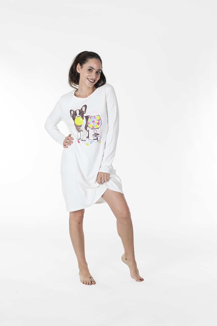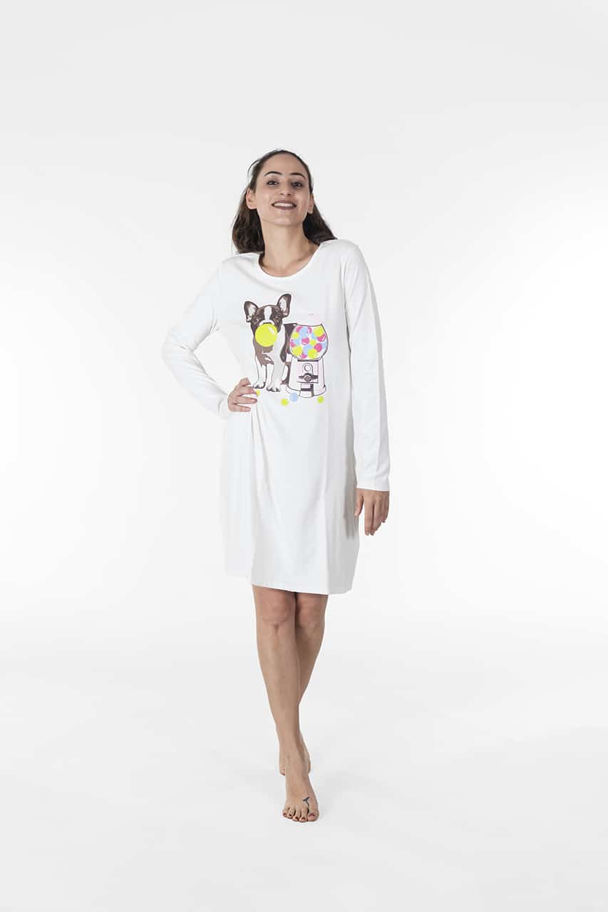 Camicia da notte invernale Verdissima 31.W3MBG28 con stampa simpatica su fondo milk, in caldo cotone. Perfetta per notti invernali calde, comode e piene di stile.