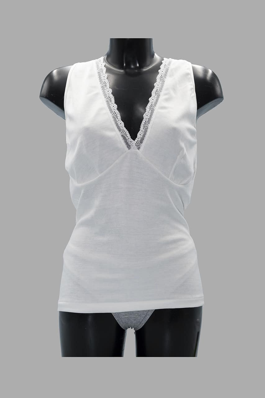 Il pizzo frontale dona un tocco femminile, valorizzando una canottiera lana donna elegante ma pratica.