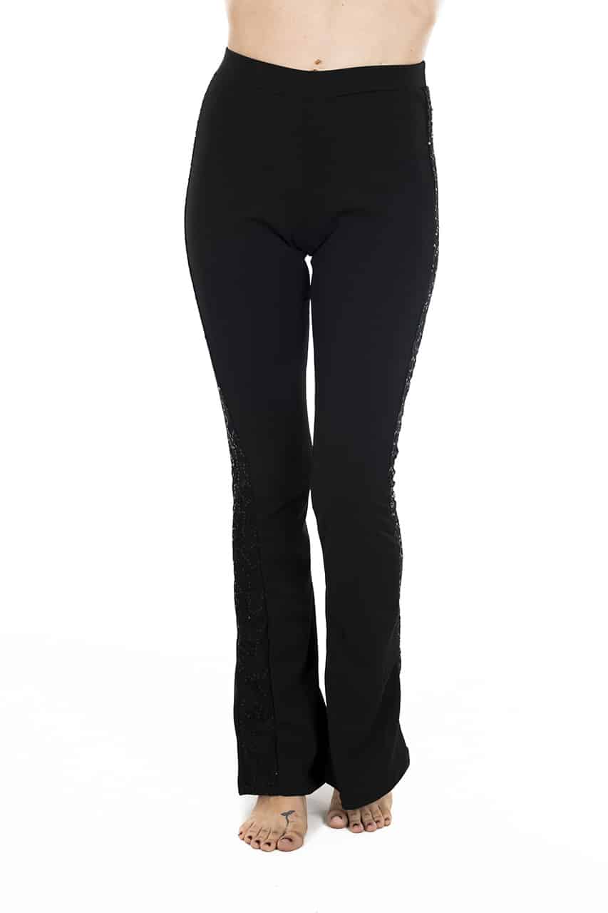 Leggings a zampa Rossoporpora L254 con banda laterale in pizzo e paillettes