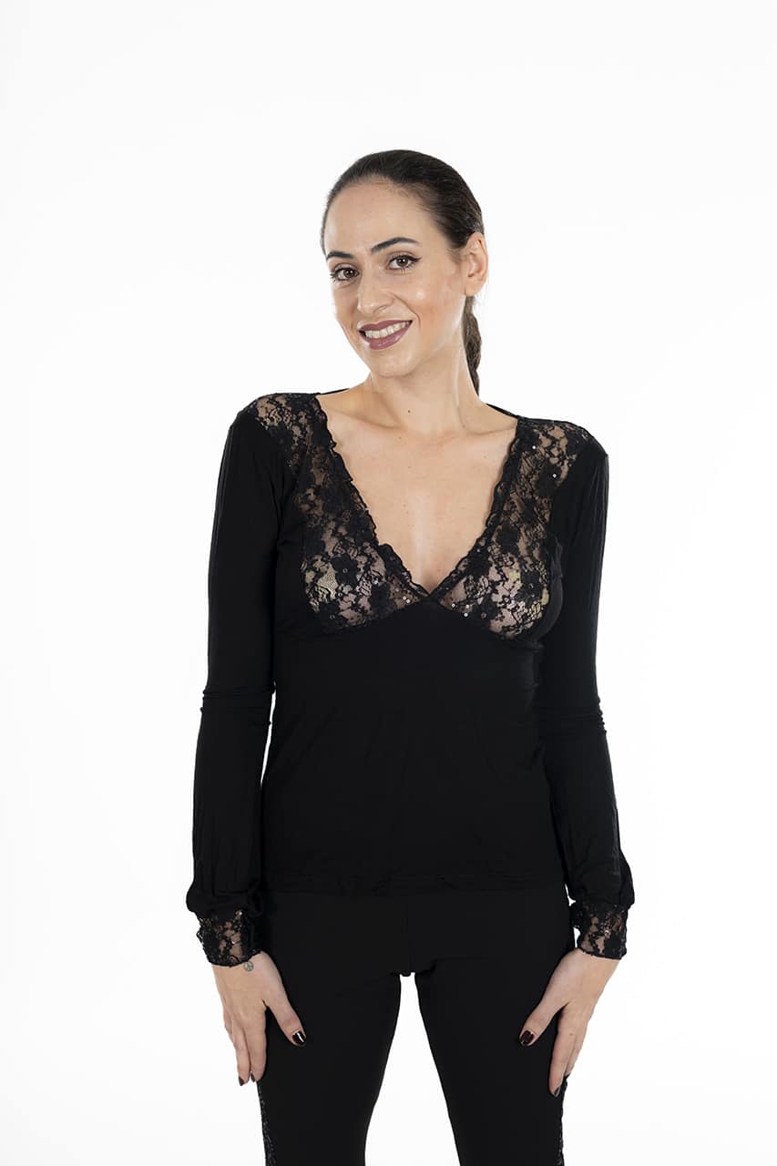 Maglia donna invernale Rossoporpora LE252: Elegante e versatile, questa maglia invernale di Rossoporpora è perfetta per aggiungere un tocco di femminilità al tuo look. Realizzata con maniche lunghe e una raffinata scollatura a V in pizzo, si presta perfettamente come sotto giacca, ma è anche ideale da indossare da sola per un tocco sofisticato.