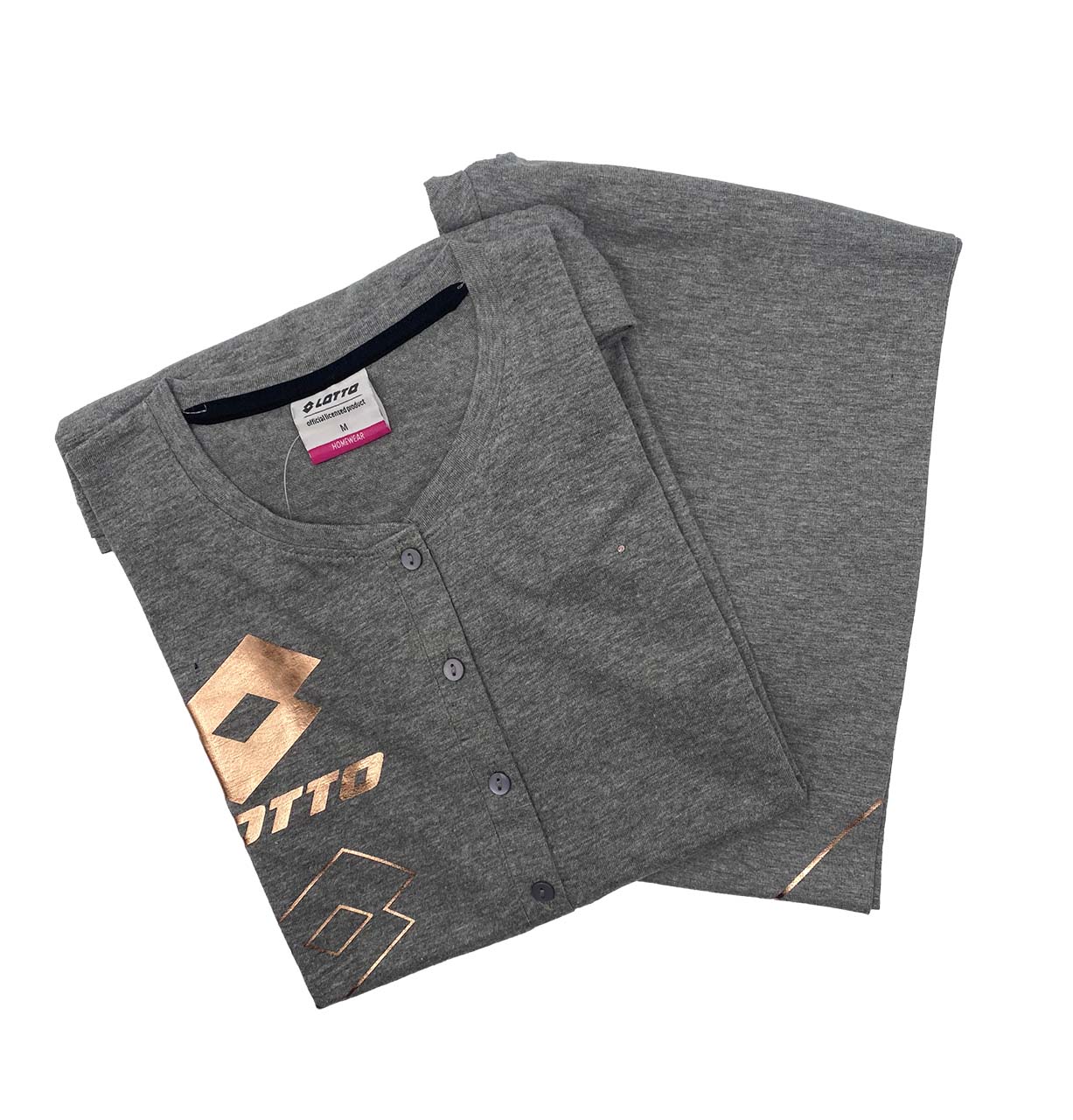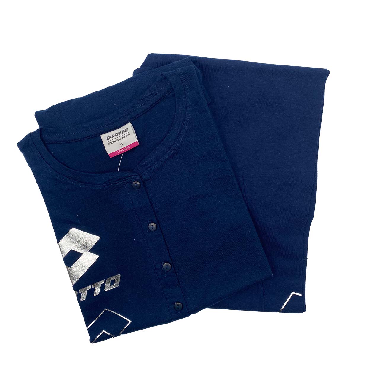 La maglia tinta unita con logo Lotto dona un tocco sportivo e riconoscibile. Il completo riflette lo stile tipico del pigiama Lotto donna.