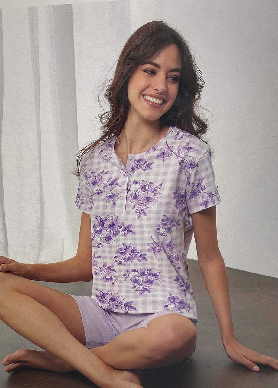 Questo pigiama estivo donna è pensato per offrire freschezza nelle giornate più calde. Il taglio corto garantisce libertà di movimento e una vestibilità confortevole.