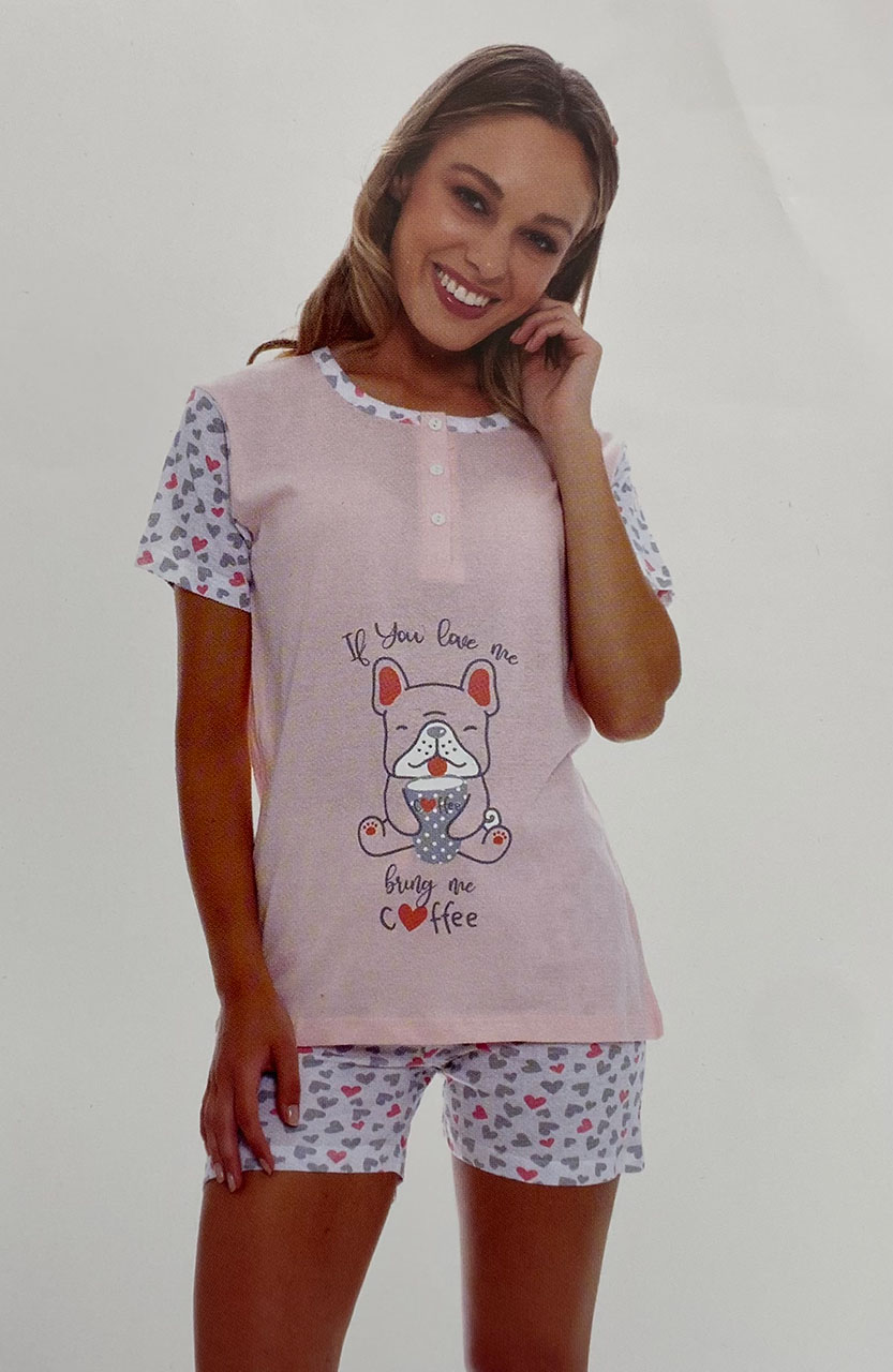 Tra i più richiesti pigiami da donna estivi, si distingue per lo stile giovane e la fantasia originale. Perfetto per chi cerca un look vivace.