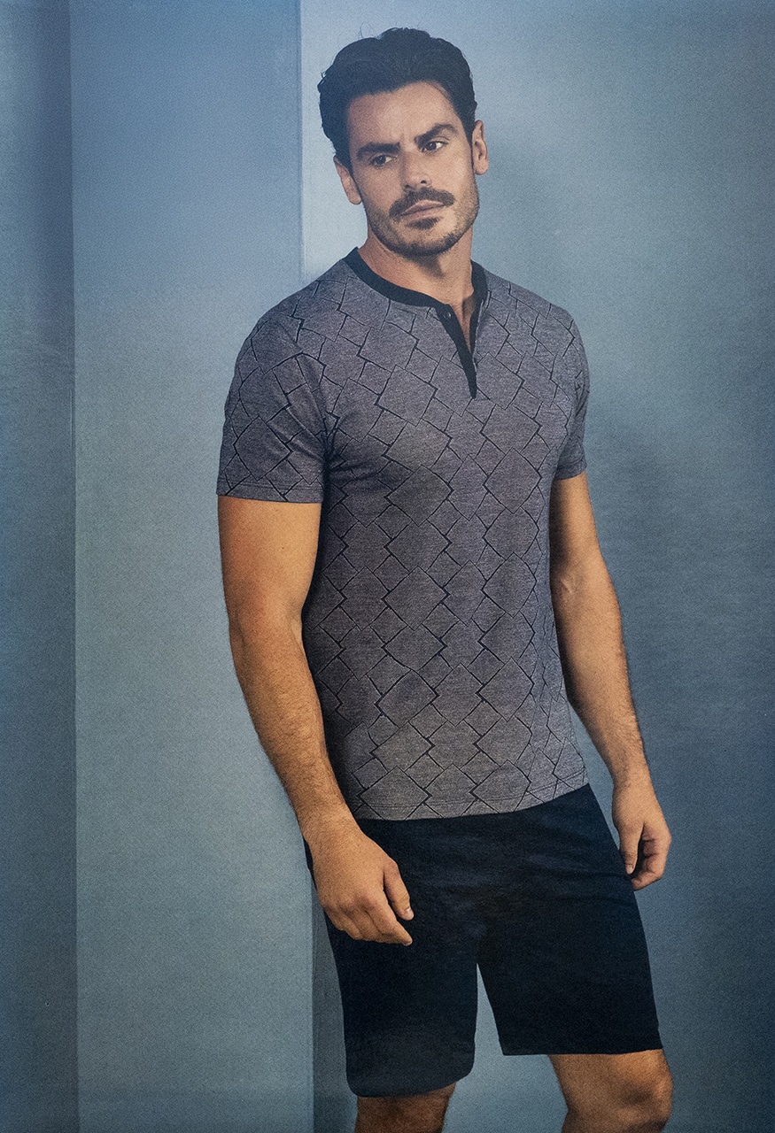 Pigiama corto uomo Enrico Coveri EP1142: il compagno ideale per le notti estive, pensato per offrire comfort, leggerezza e uno stile sempre curato anche nei momenti di relax.