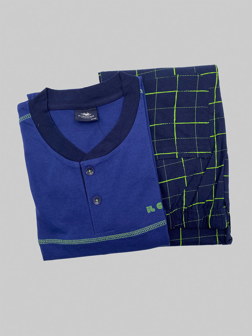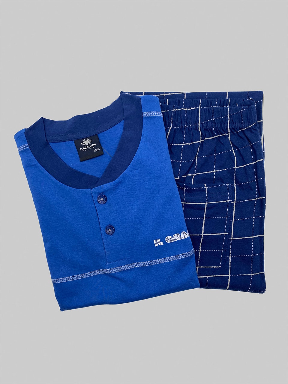 Il capo è firmato pigiama uomo Il Granchio, marchio apprezzato per l’attenzione ai dettagli e alla vestibilità.