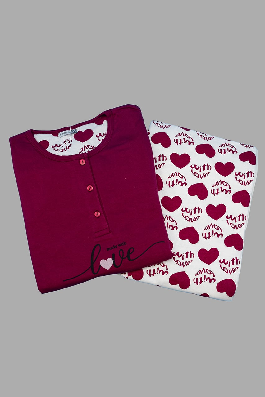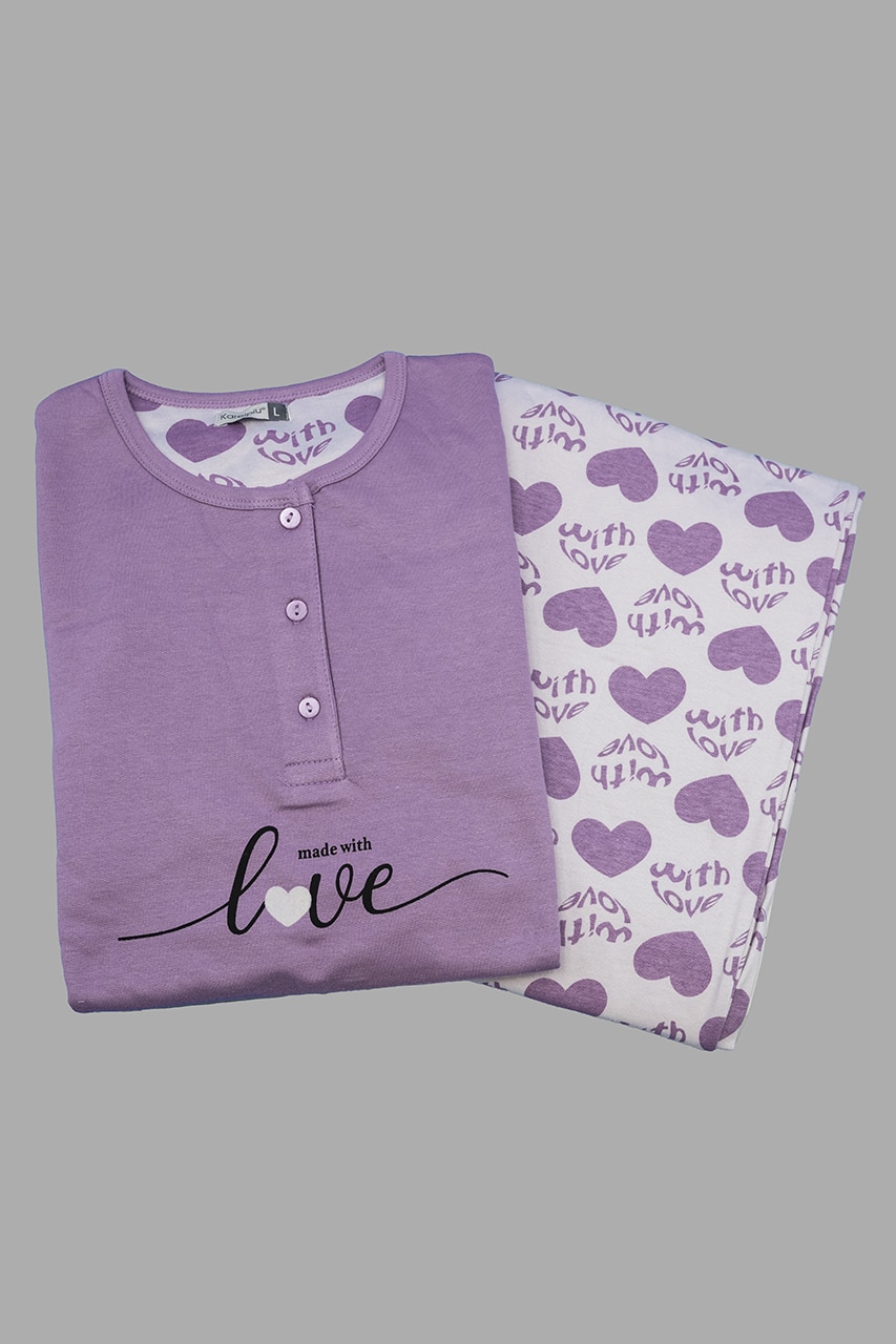 Firmato Karel Pigiami, questo modello è realizzato in cotone caldo, un tessuto naturale che trattiene il calore e allo stesso tempo lascia respirare la pelle. È ideale come pigiama donna invernale, perché protegge dal freddo senza risultare pesante o ingombrante.