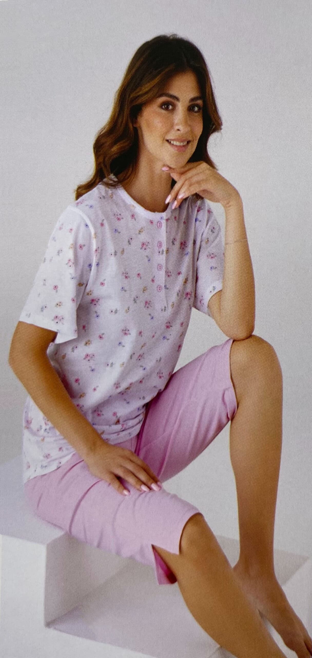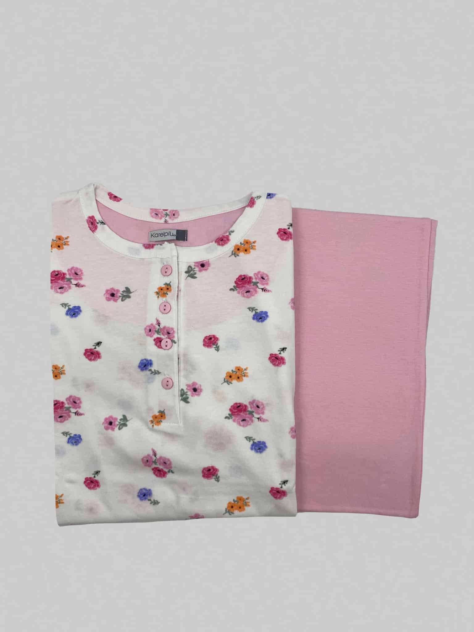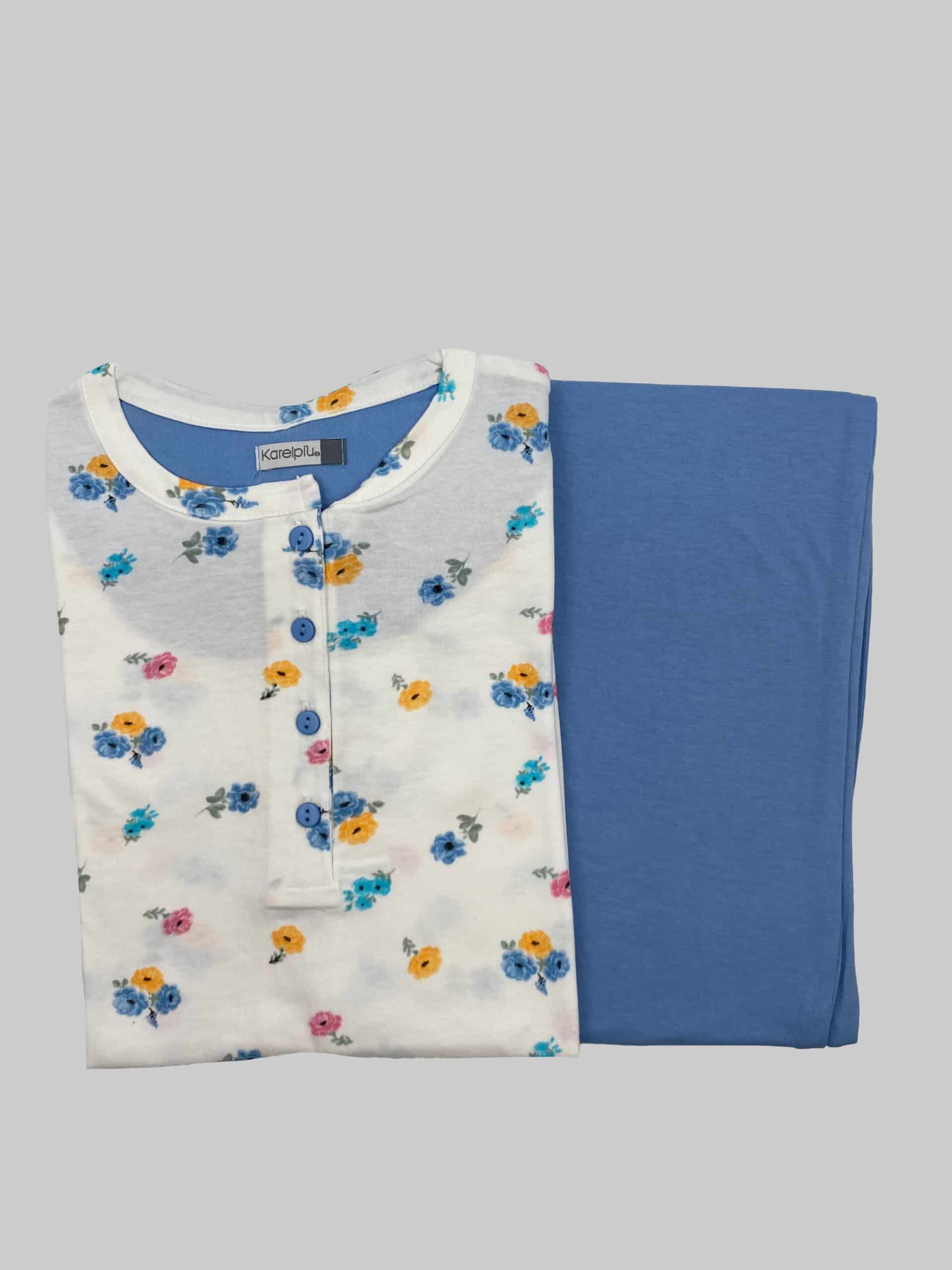 Il pigiama donna in cotone corto Karelpiù KC8035 è ideale per l’estate, con maglia floreale e pantaloncino corto in cotone, fresco, comodo e disponibile in vari colori e taglie.
