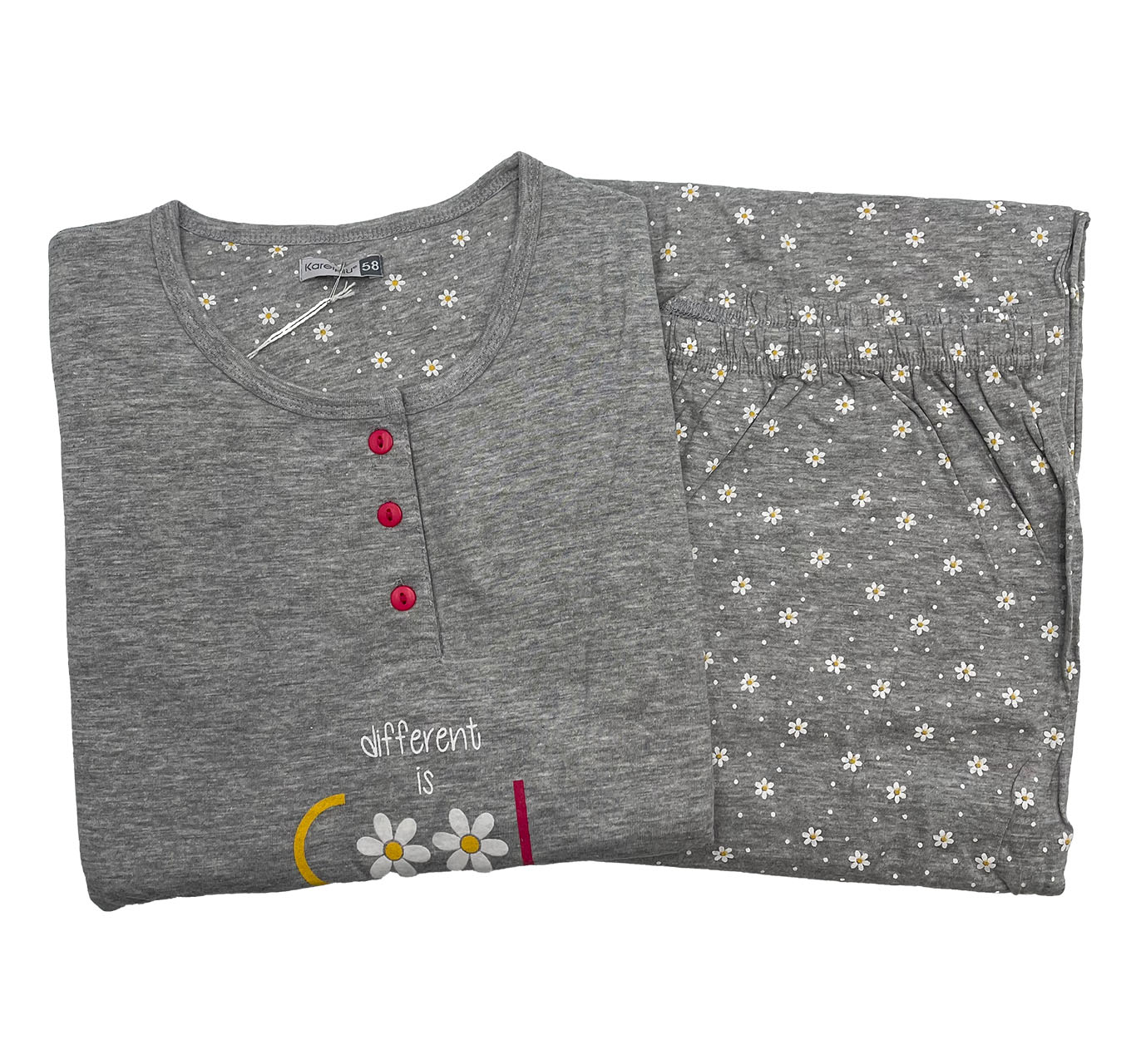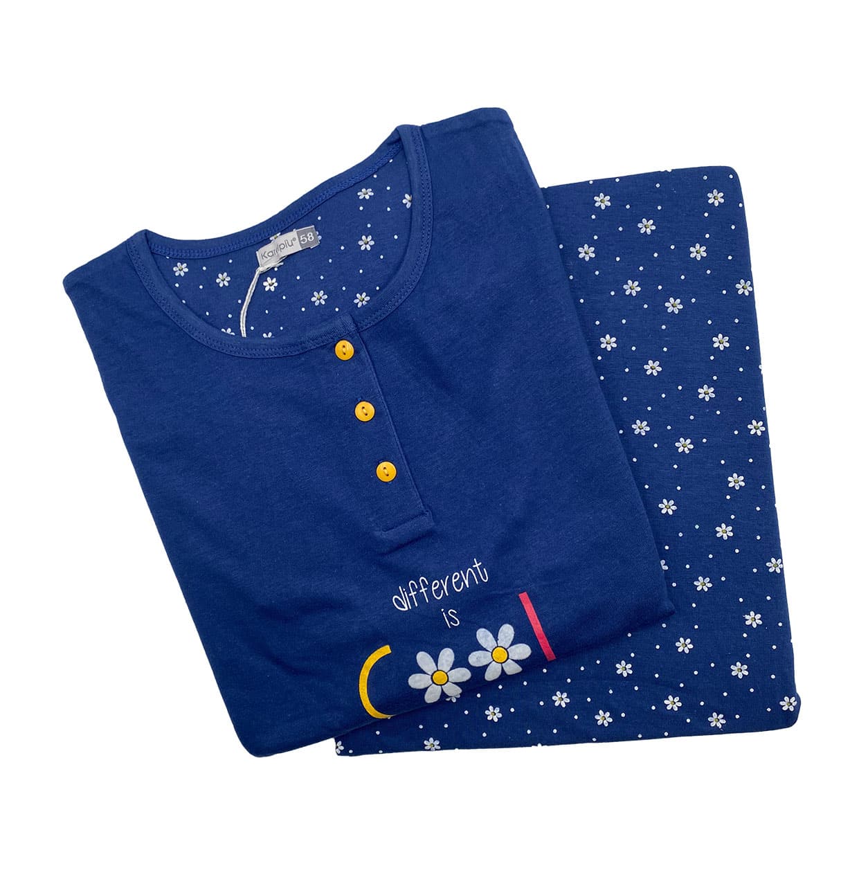 Il modello appartiene alla linea Karelpiù pigiami, pensata per chi desidera qualità e comodità anche nelle taglie più ampie.