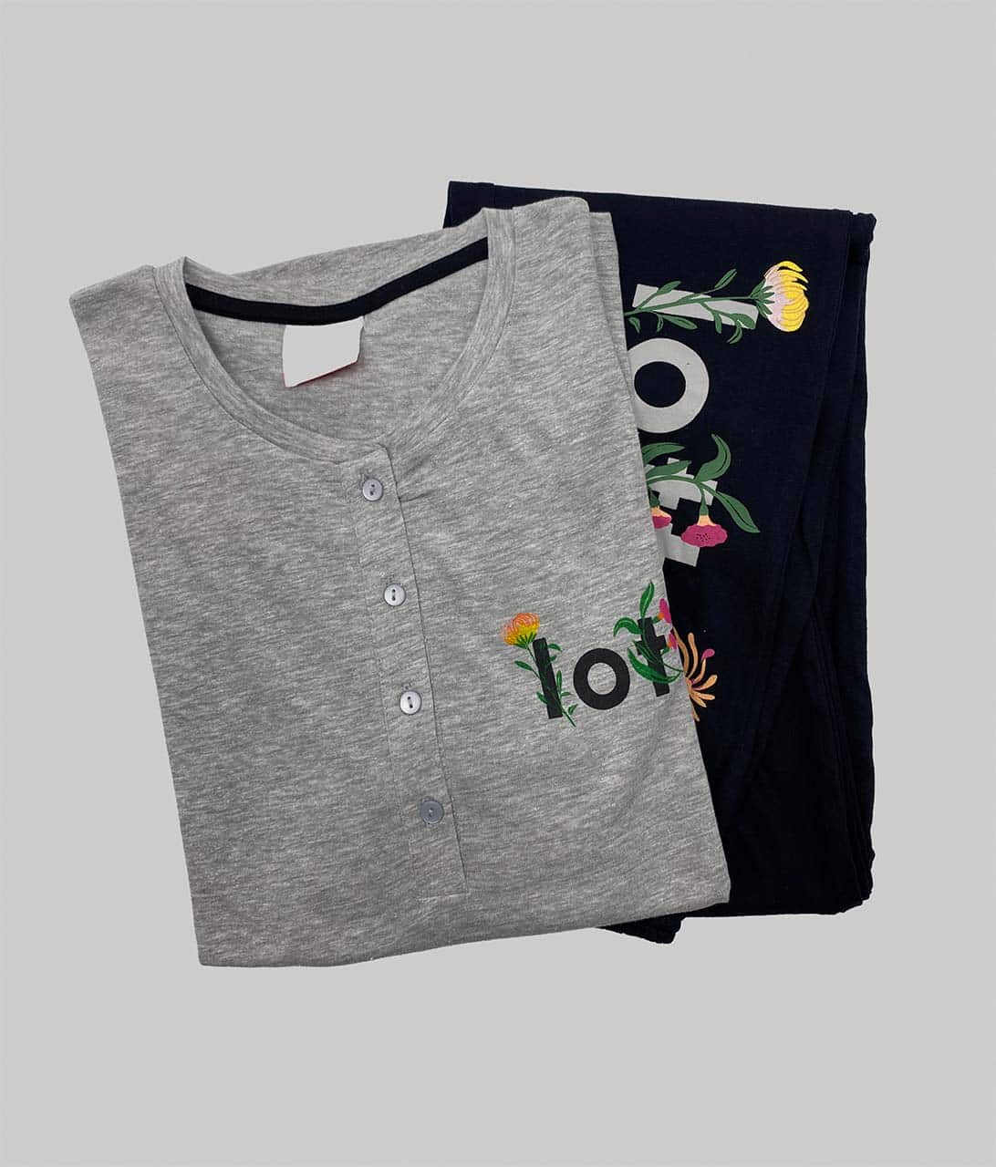 Il pigiama è dotato di apertura con bottoni sul collo, una soluzione pratica che facilita l’indosso.