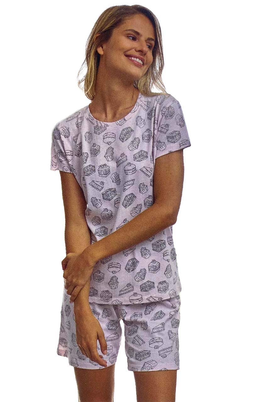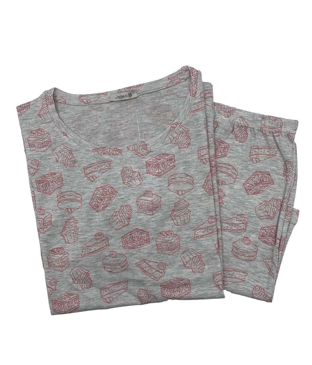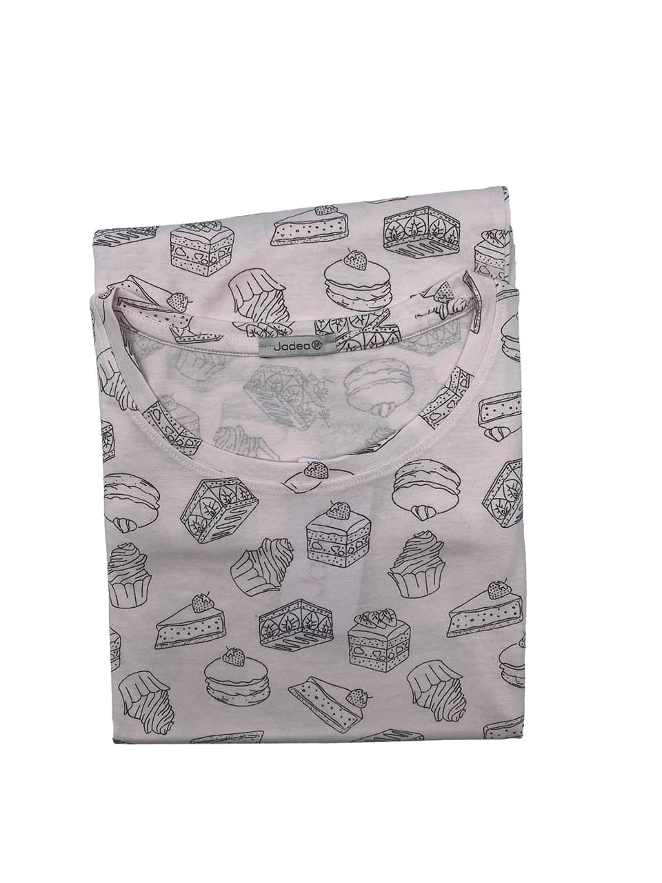 La maglia girocollo è decorata con una simpatica stampa di dolci, rendendo questo capo originale e perfetto tra i pigiamo donna simpatici.