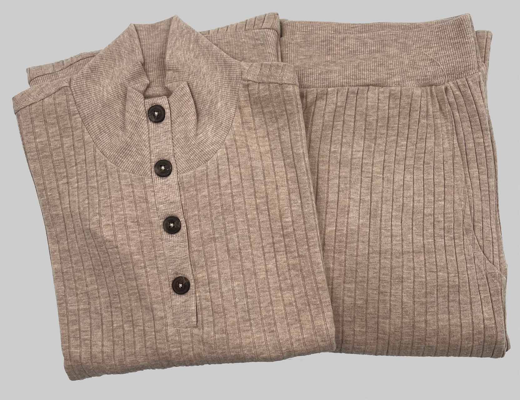 Le tonalità disponibili, salvia e sabbia, si adattano facilmente a gusti diversi e risultano delicate e rilassanti. Inoltre, la disponibilità di taglie dalla S alla XL consente una scelta ancora più precisa. La qualità del tessuto assicura morbidezza, mentre le composizioni variano leggermente in base alle varianti colore, mantenendo sempre un’ottima traspirabilità tipica dei pigiami da donna invernali.