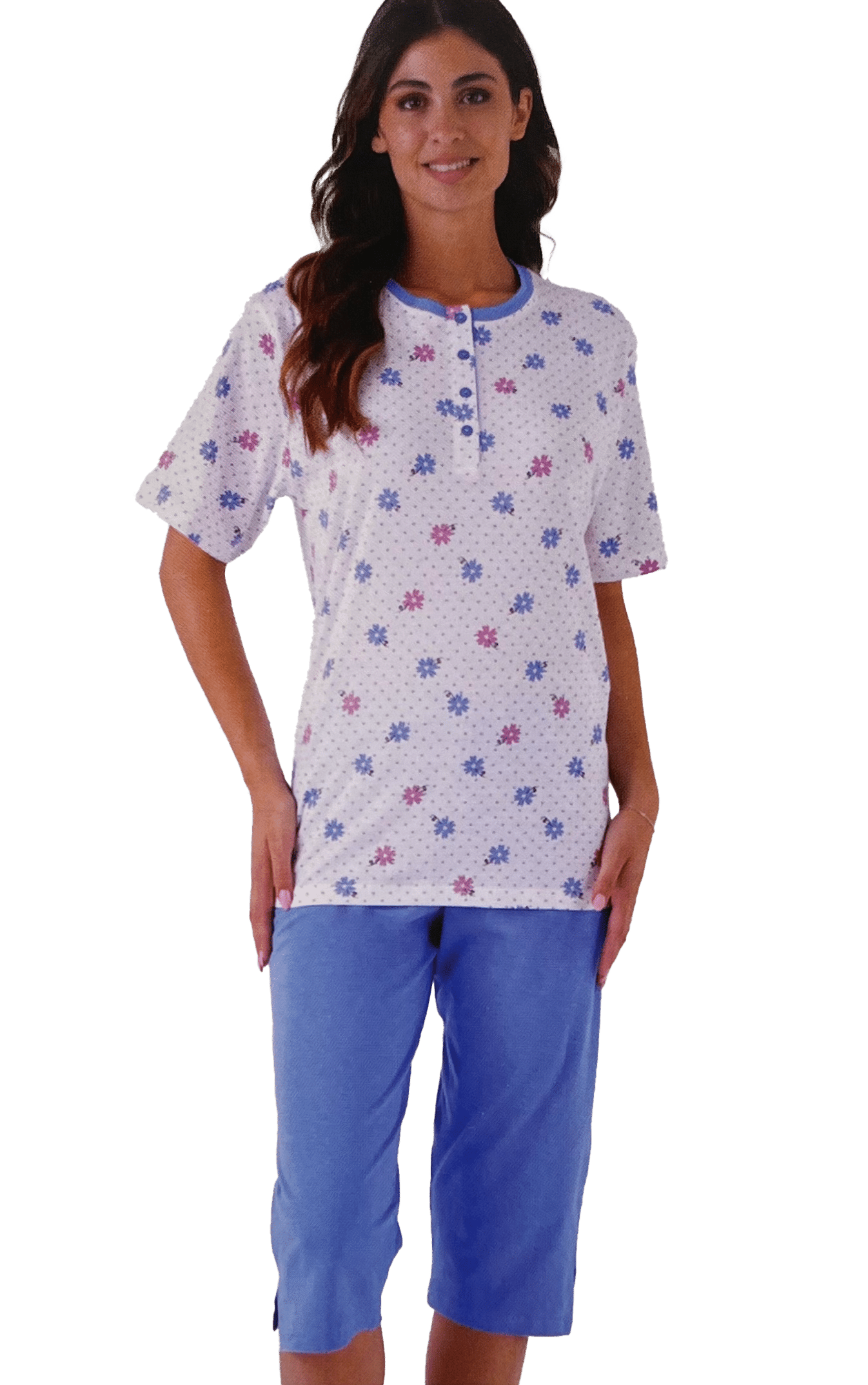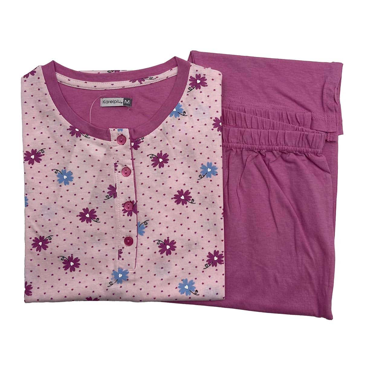 Pigiama pinocchietto Karelpiù KE0076PCP è la scelta ideale per chi cerca comfort e leggerezza durante il riposo, perfetto tra i pigiami estivi da donna.