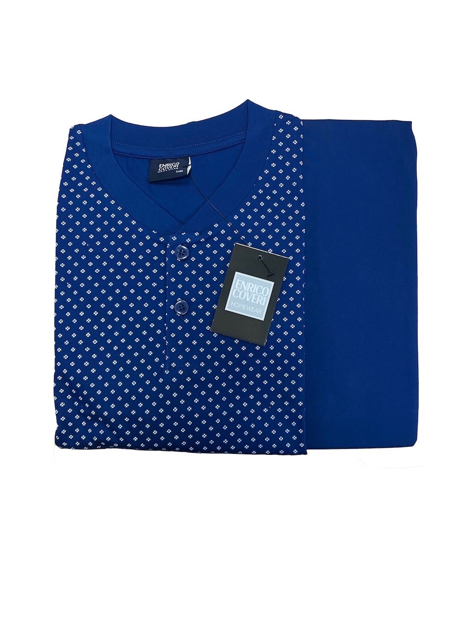 Pigiama uomo cotone leggero Enrico Coveri EP8135, ideale per le notti estive, unisce comfort e stile. Perfetto per chi cerca un pigiama uomo pratico e raffinato, questo modello è realizzato in 100% cotone, garantendo traspirabilità e morbidezza sulla pelle.