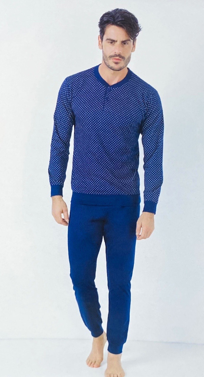La maglia presenta un’elegante apertura a serafino con microfantasia, aggiungendo un tocco di classe, mentre il pantalone a tinta unita nel colore oceano dona un aspetto sofisticato. Adatto alla stagione primavera/estate, è una scelta perfetta per chi desidera freschezza e libertà di movimento durante il riposo.