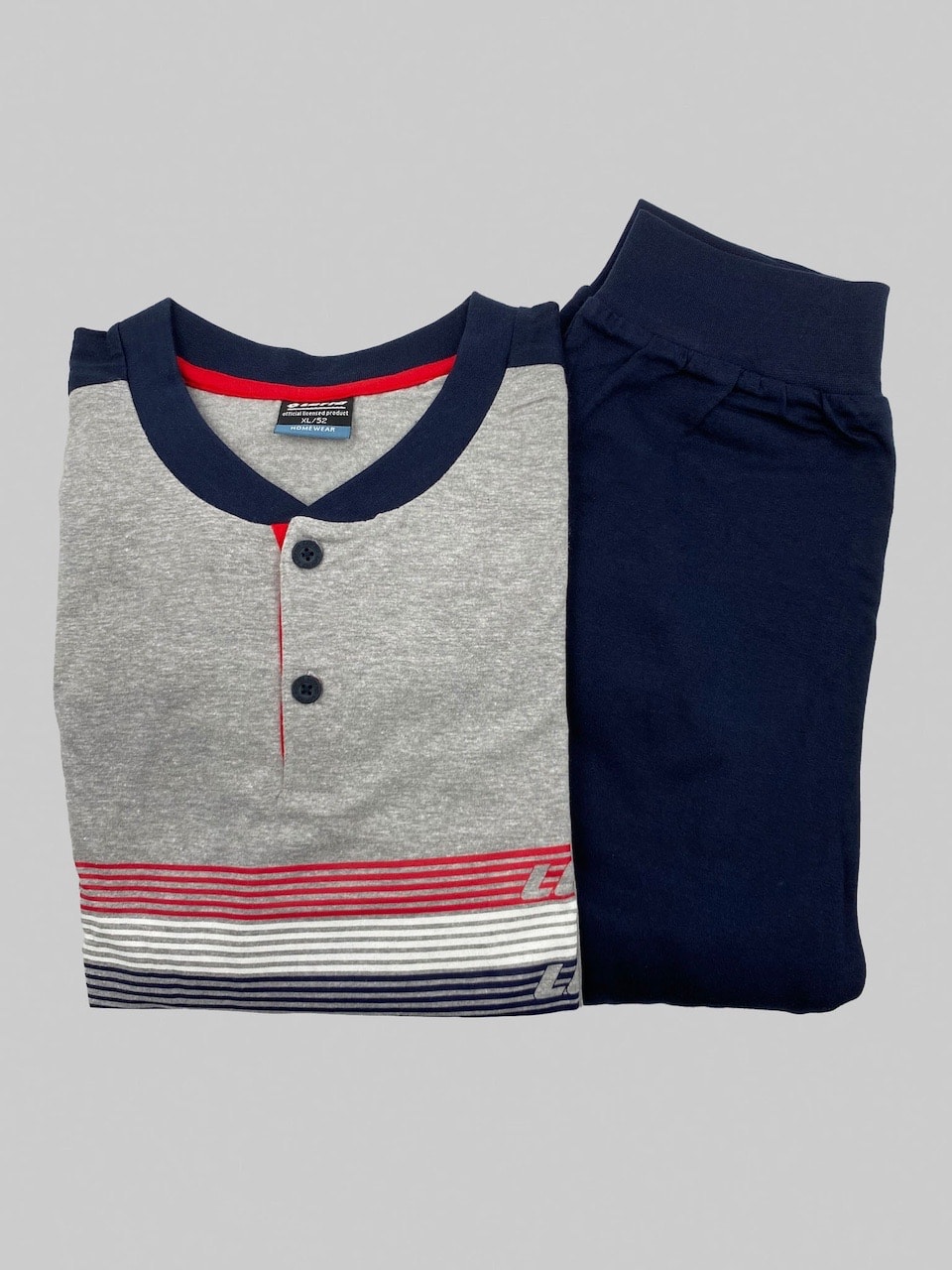 Scegli questo pigiama per la stagione calda: la combinazione di materiali traspiranti e dettagli funzionali lo rende uno dei migliori pigiami cotone uomo sul mercato. Ideale per chi cerca un pigiama uomo estivo, ma preferisce il comfort di un pigiama lungo.