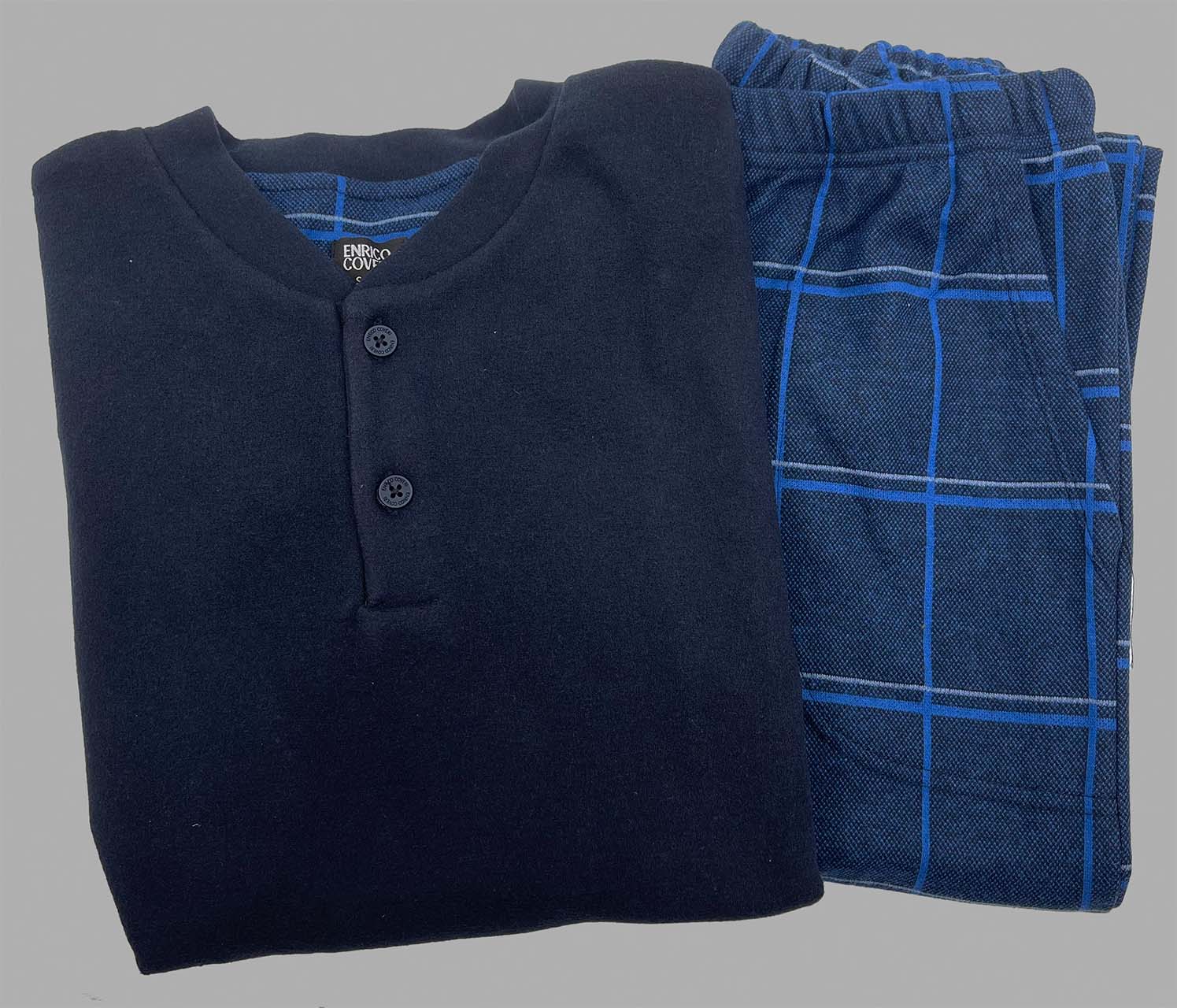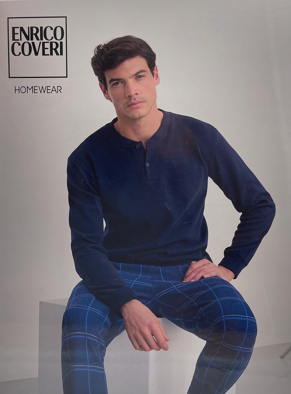 Pigiama uomo invernale Enrico Coveri EP2217 è la scelta ideale per chi desidera un capo caldo, morbido e piacevole da indossare durante le serate più rigide. Realizzato in punto milano, un tessuto apprezzato per la sua particolare morbidezza e capacità di trattenere il calore, offre una sensazione avvolgente che accompagna il riposo per tutta la notte. La maglia tinta unita con bottoni aggiunge praticità, mentre i pantaloni fantasia rendono il completo moderno e originale senza rinunciare allo stile sobrio tipico del marchio Enrico Coveri.