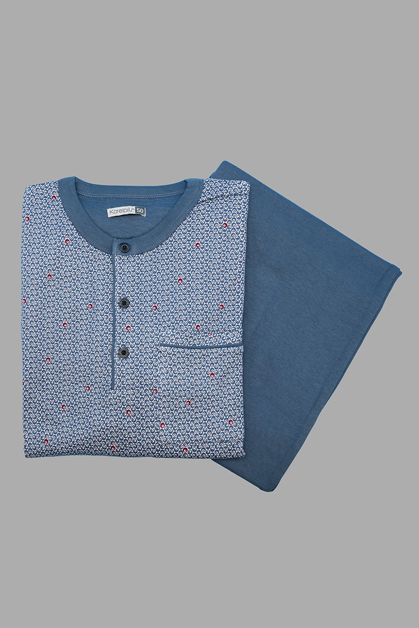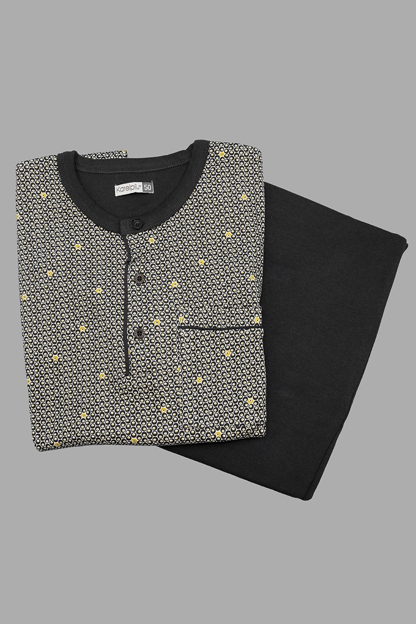 La casacca stampata con microfantasia si abbina perfettamente ai pantaloni a tinta unita, creando un look moderno e versatile. Se stai cercando pigiami uomo invernali che combinano praticità e design, i Karel Pigiami sono la soluzione perfetta. Grazie al tessuto in caldo cotone uomo, questo pigiama è traspirante e confortevole, offrendo il massimo del calore durante la stagione fredda.