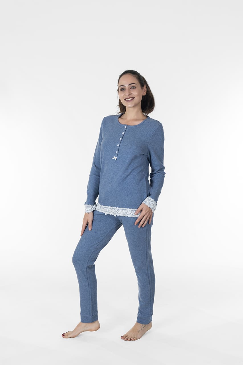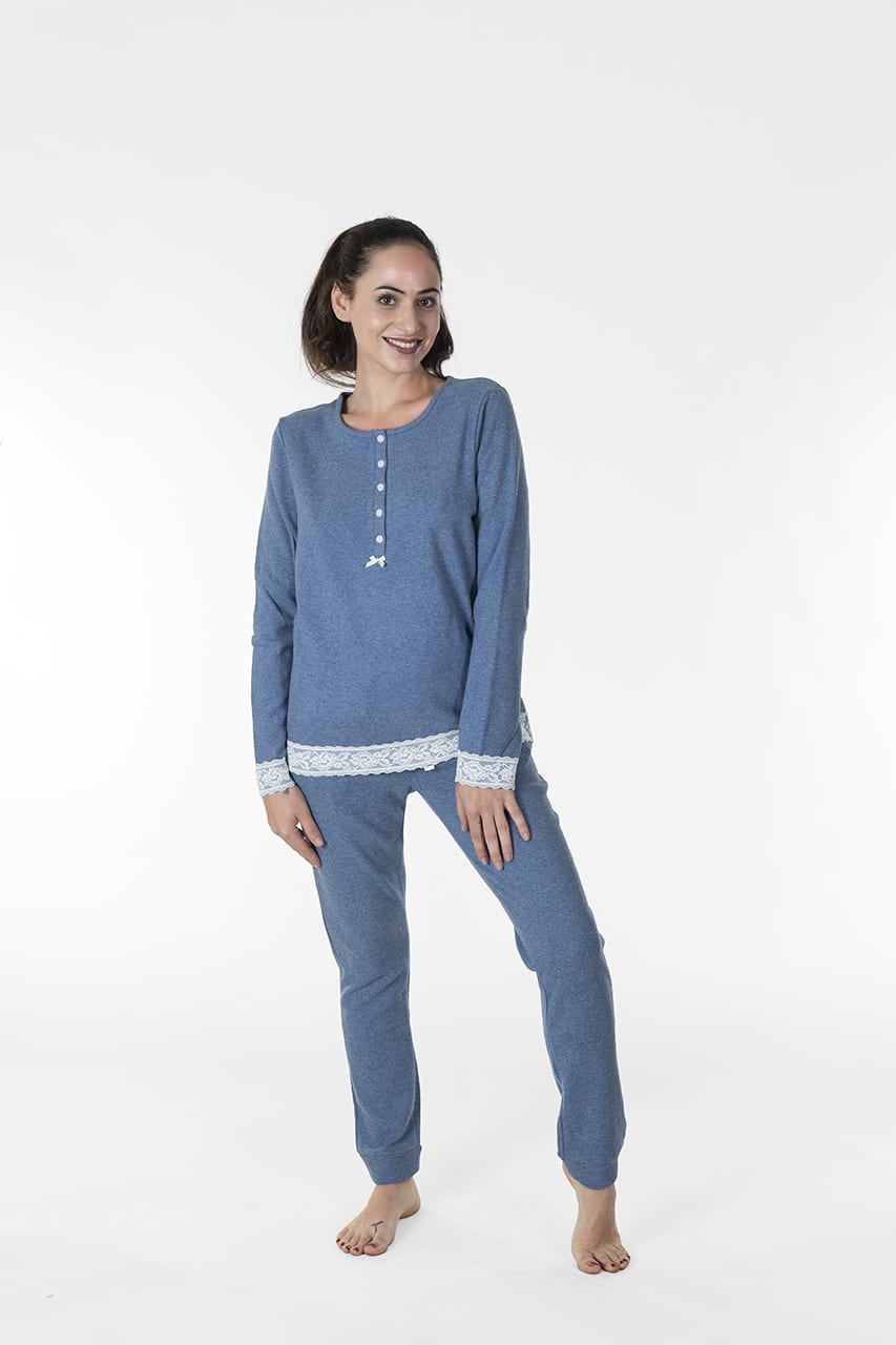 Inoltre, si distingue per la vestibilità comoda, perfetta per rilassarsi senza costrizioni, rendendolo un autentico pigiama donna caldo cotone di fascia alta.