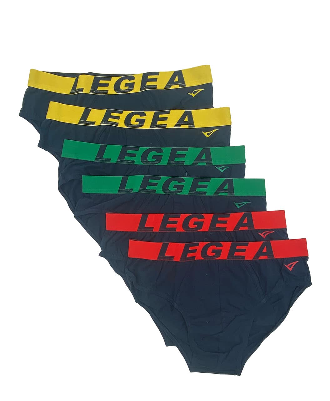 Slip uomo Legea in cotone elasticizzato, confezione da 6 pezzi in colori assortiti. Comfort quotidiano e praticità a un prezzo conveniente.