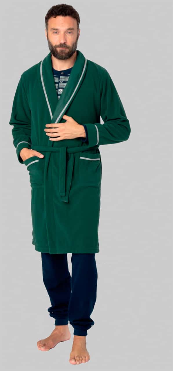 Grazie alla sua struttura tinta unita impreziosita da un elegante bordino in contrasto, questa vestaglia si distingue per uno stile sobrio ma curato, perfetto per chi desidera una vestaglia uomo invernale funzionale e piacevole da indossare.